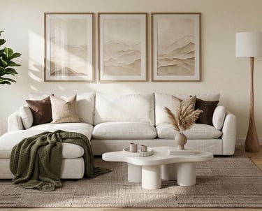 In the living room, a layered approach introduced warmth and depth through a mix of textures and carefully curated pieces, resulting in a space that feels both relaxed and refined.